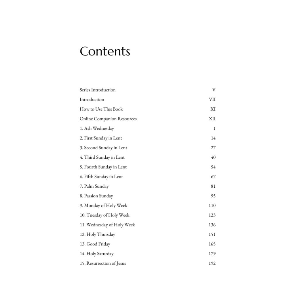 - On weeks when time or energy is short, simply pick up one or two elements (a prayer, a meditation, a discussion question) to enrich what you already have.