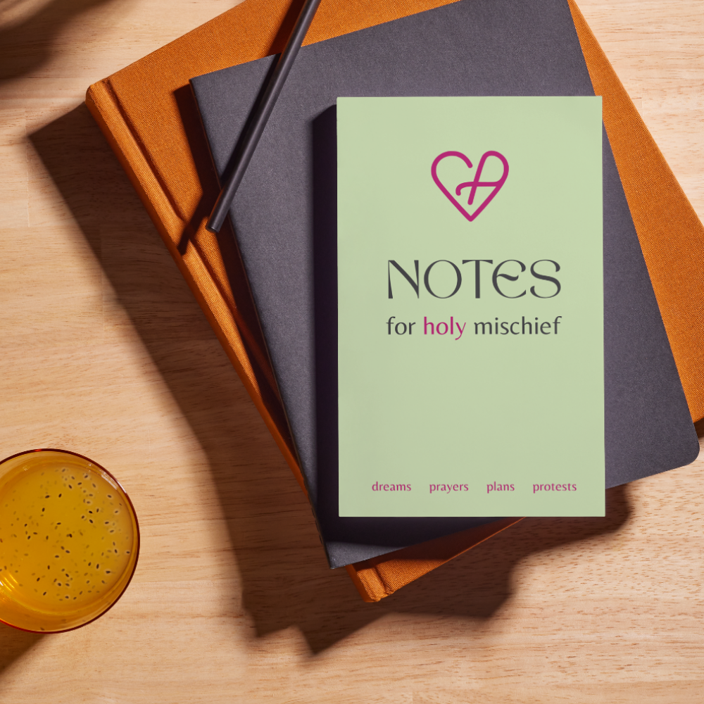With a clean, simple cover and the words notes for holy mischief, it’s a quiet reminder that your imagination, your questions and your planning can all be part of God’s work of love and justice in the world. Whether you’re in a church office, a classroom, a coffee shop, a hospital break room or on the train home, it’s there to hold what matters.